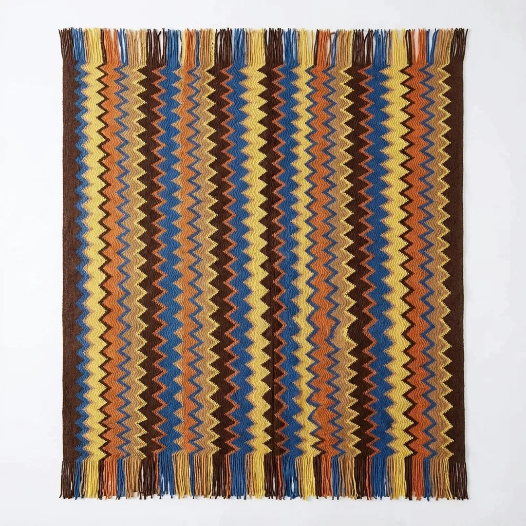 Boho Chevron Throw Blanket - Soft Knit with Fringes