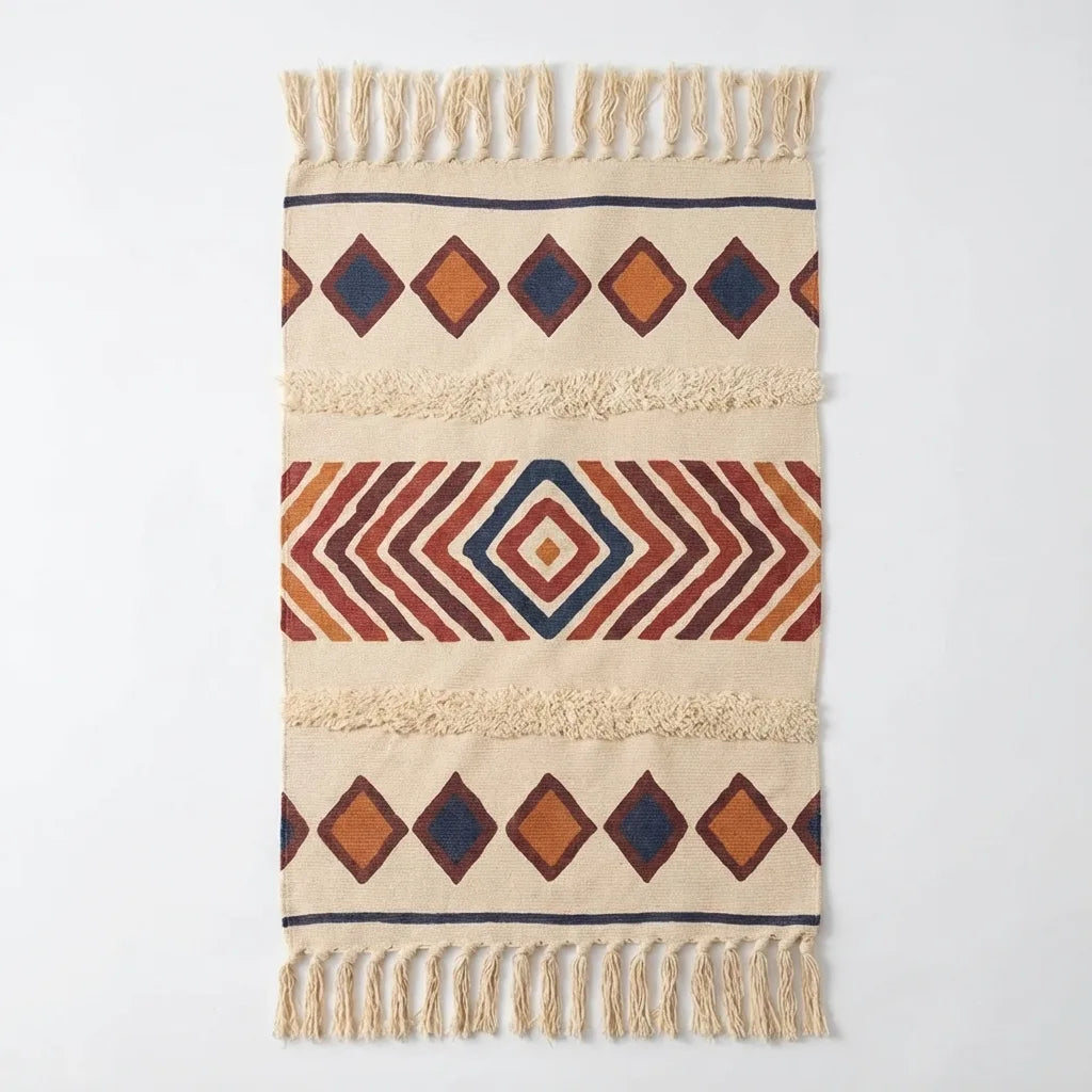 Boho Tassel Rug - Woven Cotton Accent Mat