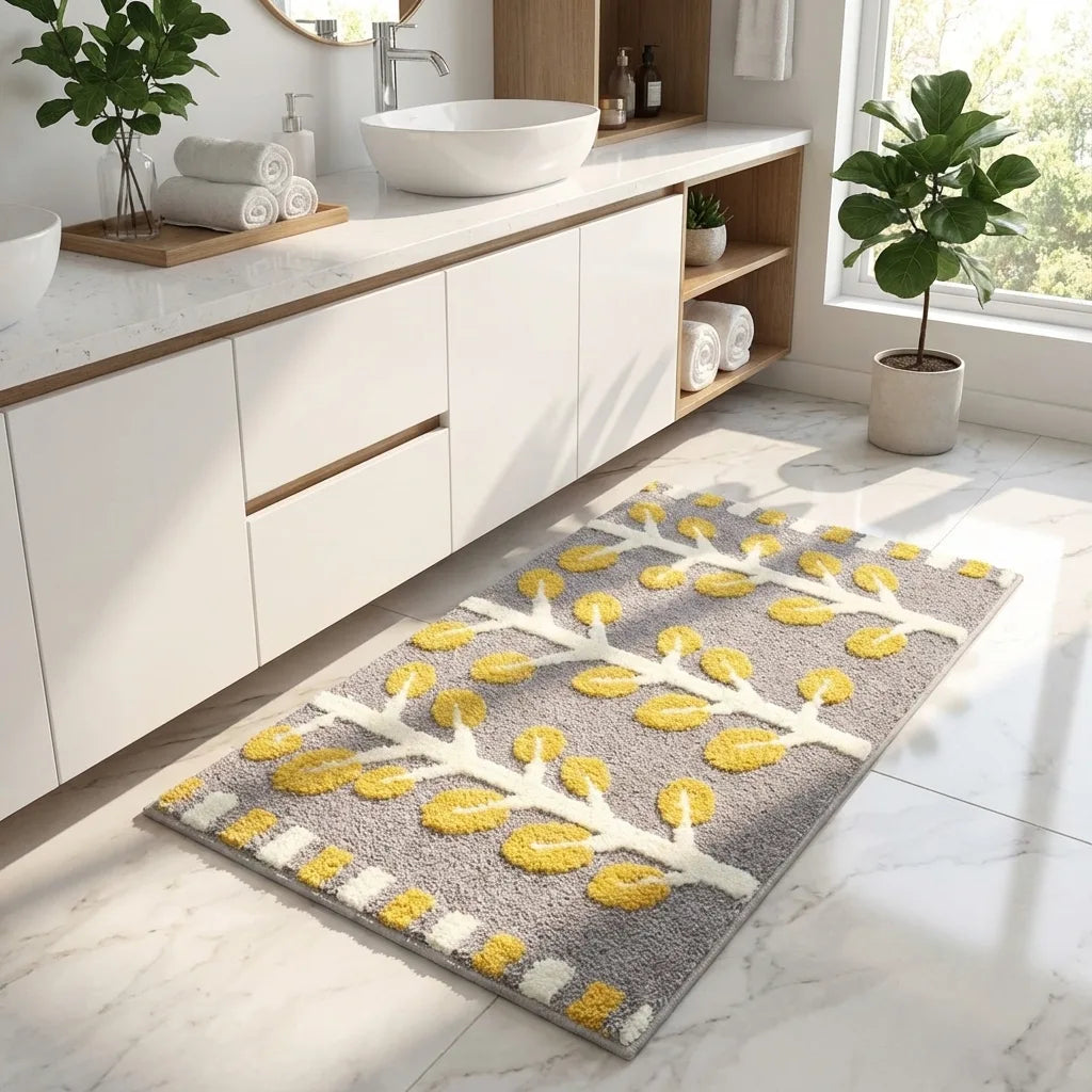 - Botanical Bath Mat - Soft Absorbent Microfiber Rug