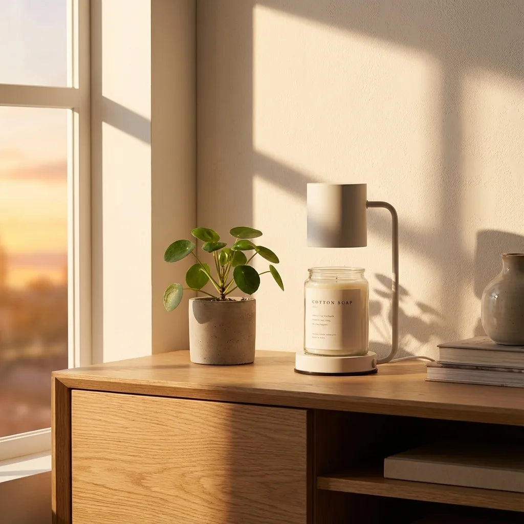 This sleek candle warmer lamp melts jar candles from above—no flame, no smoke, no soot. Just pure fragrance and a warm, cozy glow.