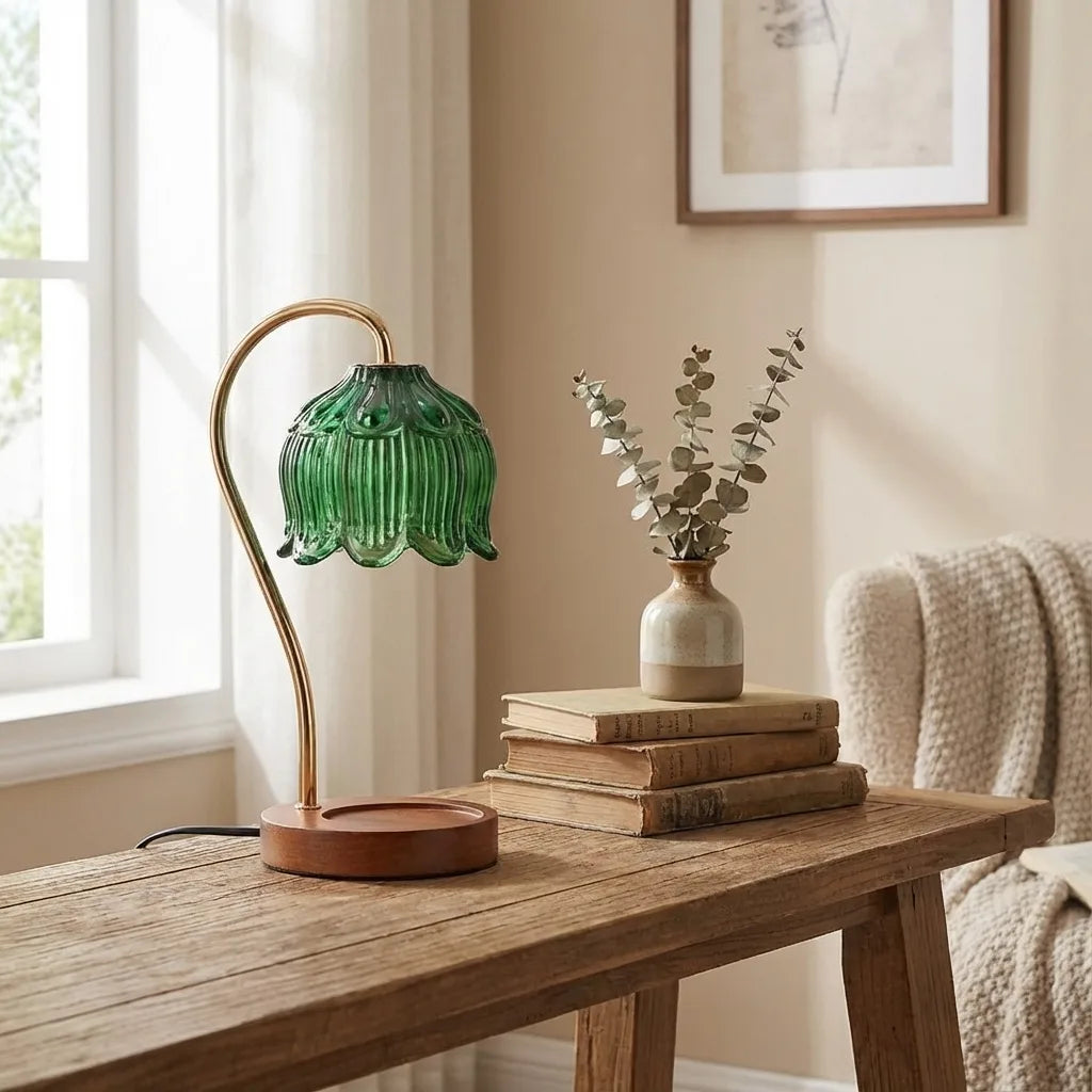 Flower Glass Candle Warmer Lamp - Elegant Wood Base