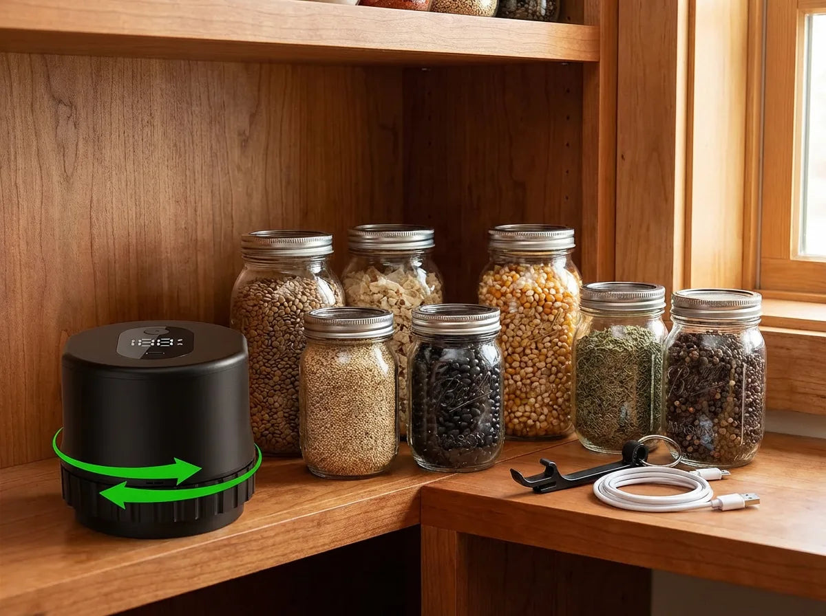 This cordless vacuum sealer keeps your mason jars airtight in 20-40 seconds—no manual pumping, no tired hands. Just press and let it work.