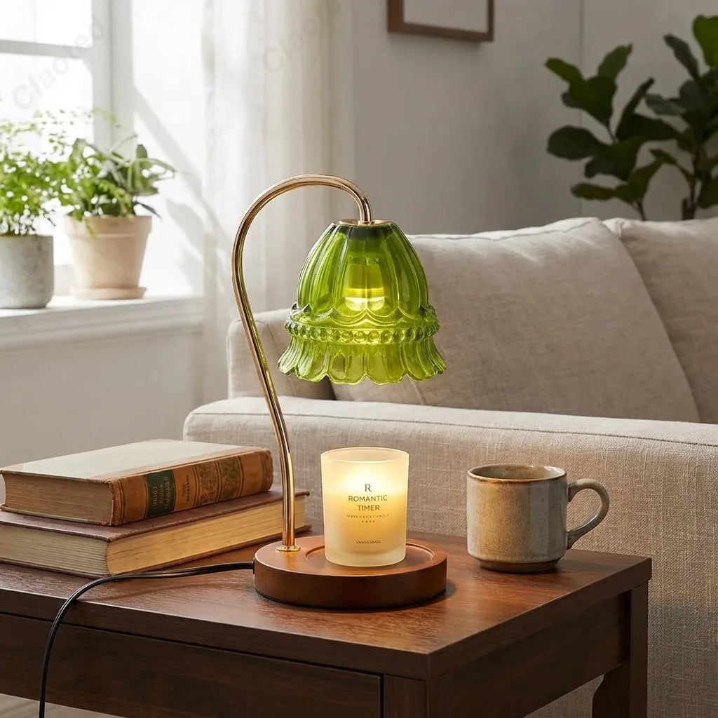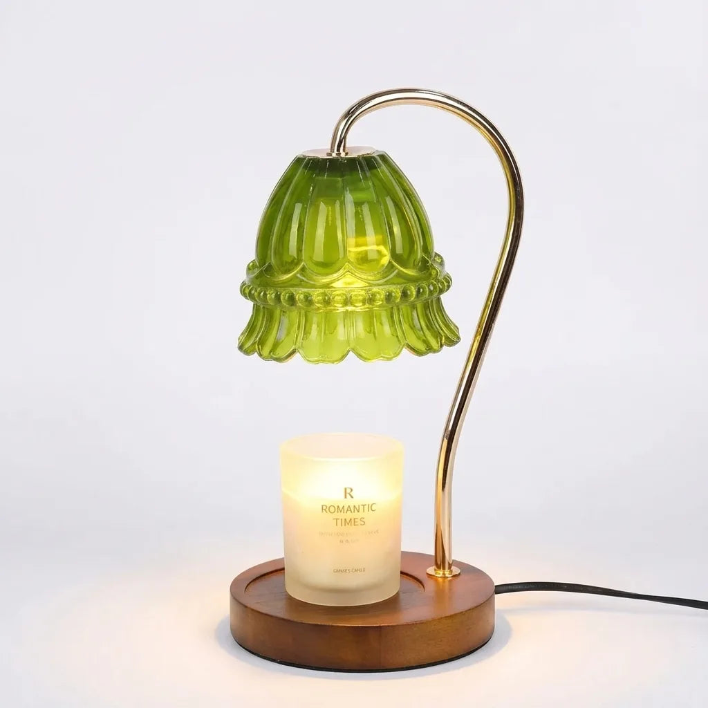 Flower Glass Candle Warmer Lamp - Elegant Wood Base