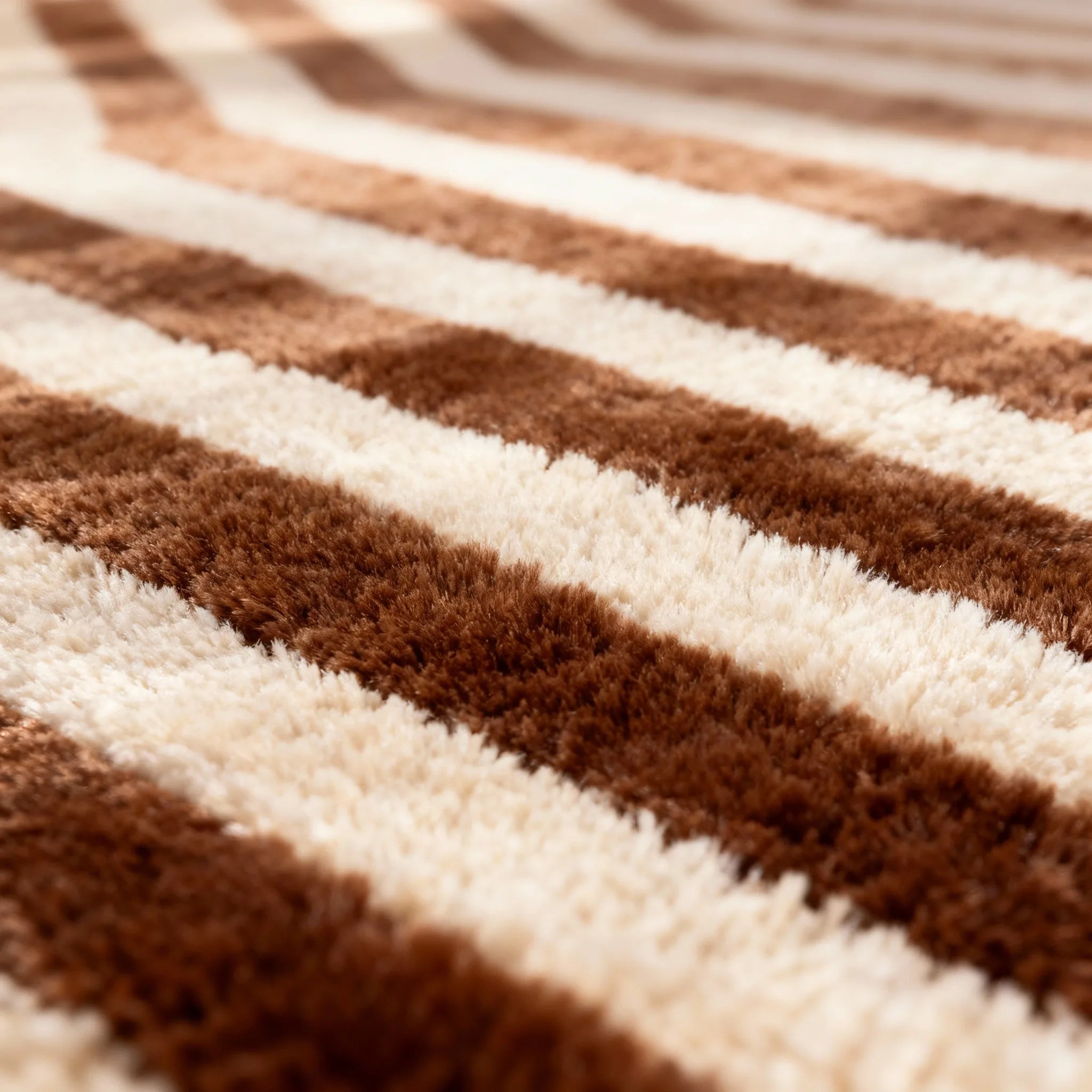 This plush grid pattern rug brings instant warmth and retro charm to your living room or bedroom. The brown and white striped design pairs perfectly with both modern and vintage decor.