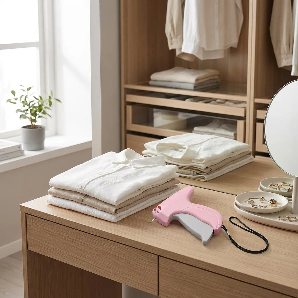 This clever tagging gun lets you cinch, tuck, and adjust any garment in seconds—no sewing required. The tiny fasteners stay completely hidden while keeping fabric exactly where you want it.