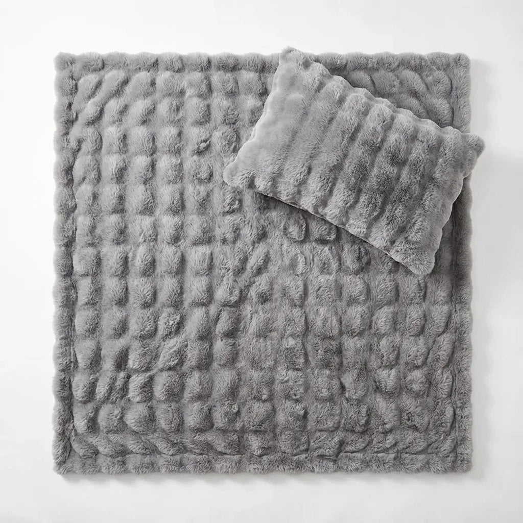 - Plush Faux Fur Throw Blanket - Cozy Bubble Texture