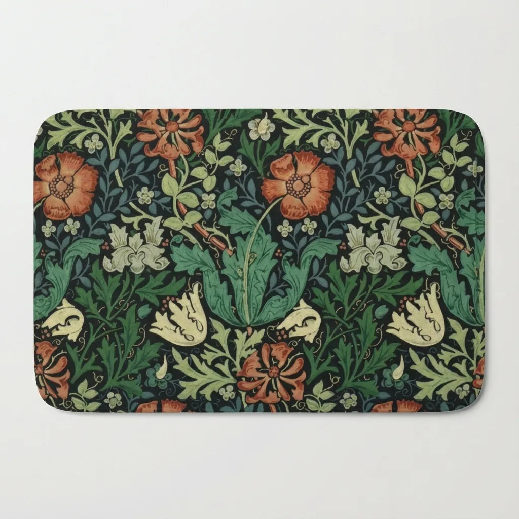 This gorgeous mat features the iconic Compton floral pattern that made William Morris famous. Rich botanical details in deep greens and warm coral—art you can walk on.